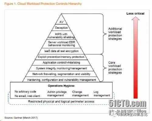 Neil将CWPP解决方案的能力进行了层次划分,并归为基础支撑、核心能力、扩展能力三大类。下图是Neil发布的2017年版《CWPP市场指南》中描绘的能力层次图,由上至下,重要性逐渐递增: