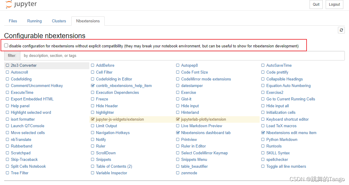 重新启动Jupyter Notebook,可以看到插件的Tab签