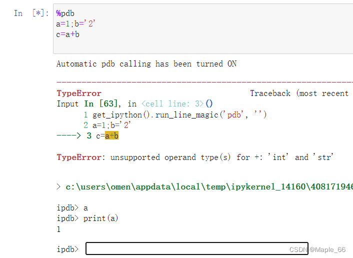 %debug 与%pdb相似,但是是手动进入调试