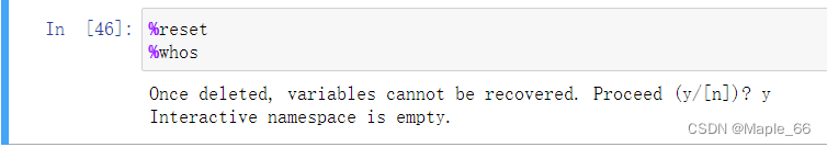 %reset 从内存中删除所有变量