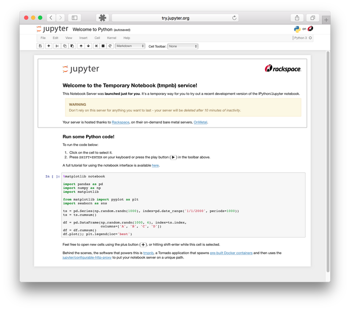 如果看了以上对Jupyter Notebook的介绍你还是拿不定主意究竟是否适合你,那么不要担心,你可以先免安装试用体验一下,戳这里,然后再做决定。