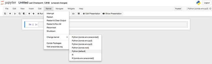 使用命令jupyter notebook启动Jupyter Notebook;在“Files”下的“New”下拉框中即可找到你在第⑶步中的自定义名称,此时,你便可以尽情地在Jupyter Notebook中切换环境,在不同的环境中创建笔记本进行工作和学习啦!