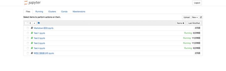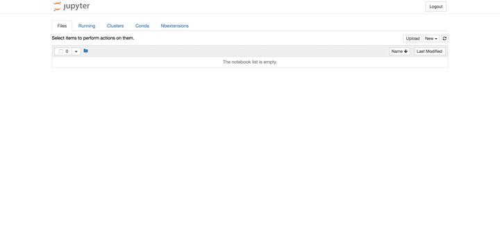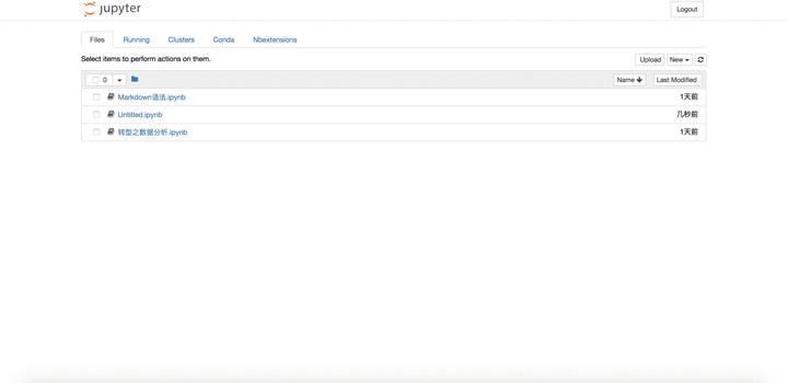当执行完启动命令之后,浏览器将会进入到Notebook的主页面,如下图所示。