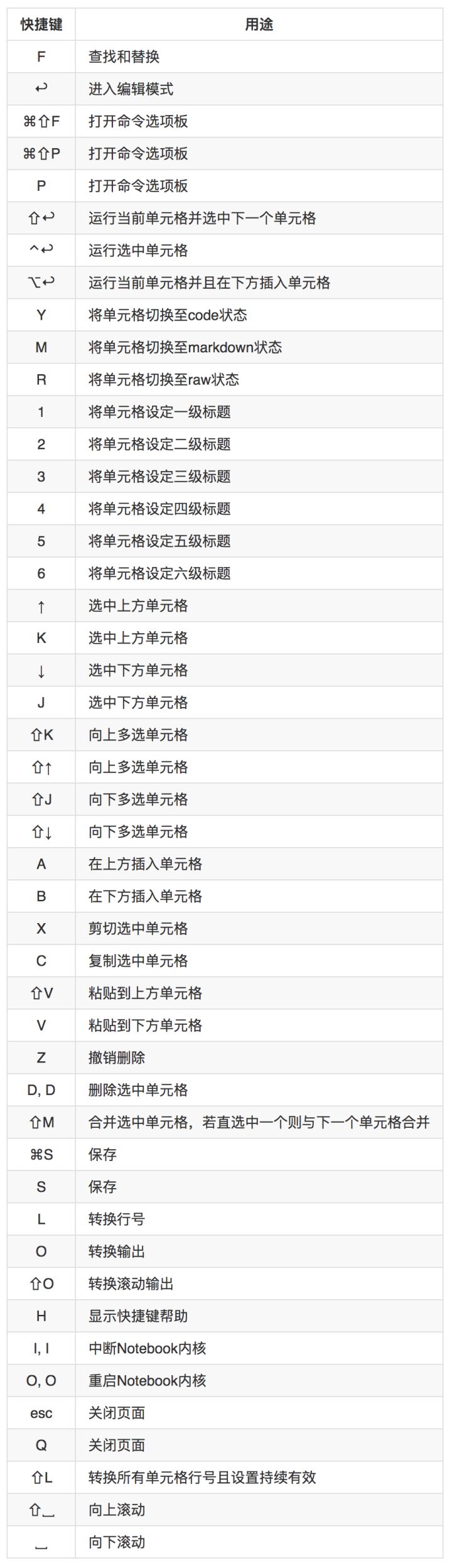 七、Jupyter Notebook快捷键