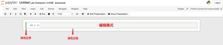 - 编辑模式使用户可以在单元格内编辑代码或文档。