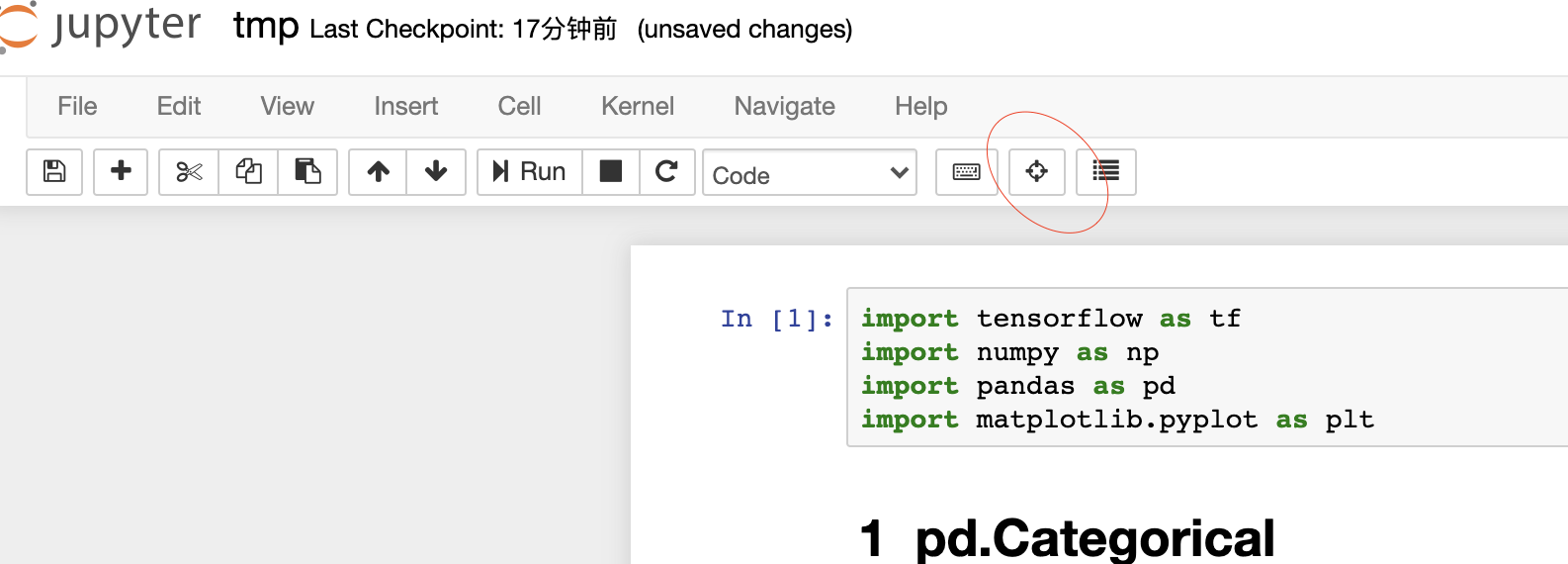 edit > nbextensions config打开配置页面,勾上Variable inspector。 - 重启 jupyter notebook,可看到查看变量的按钮