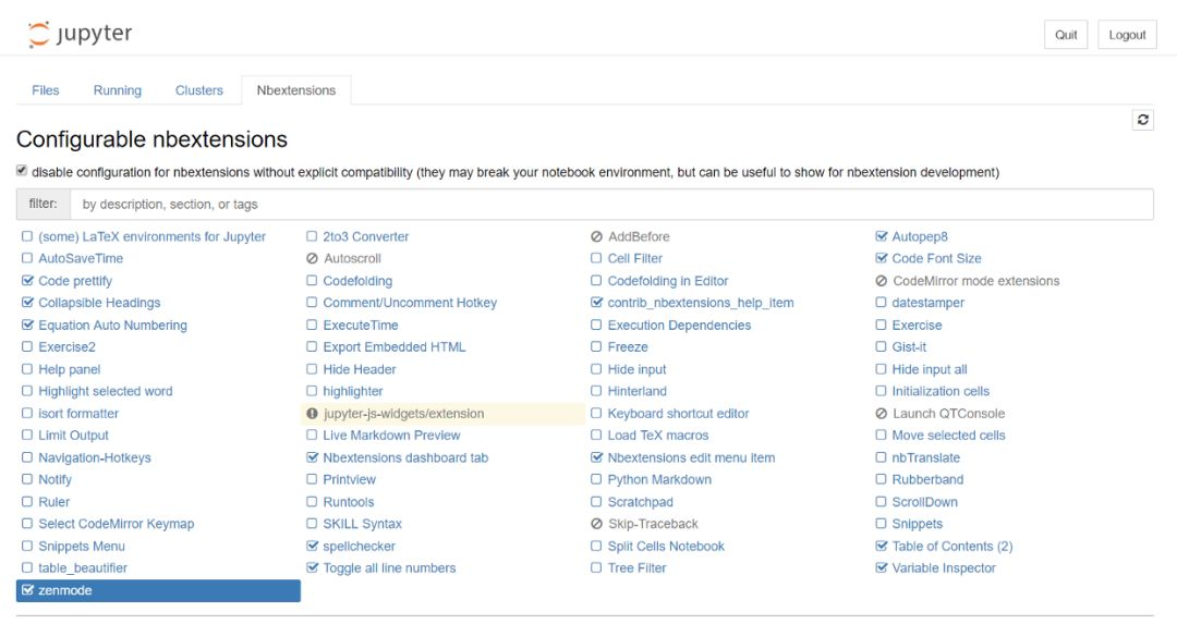 启动 Jupyter Notebook,并导航至新的 Nbextensions 选项卡: