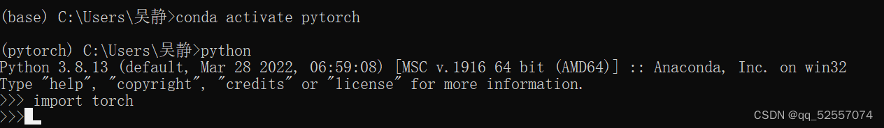 6、最后在anaconda中测试pytorch是否安装成功,如下测试的代码,注意看环境时是base还是pytorch