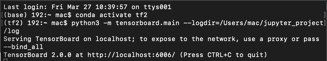 python3 -m tensorboard.main --logdir=/Users/mac/jupyter_project/log