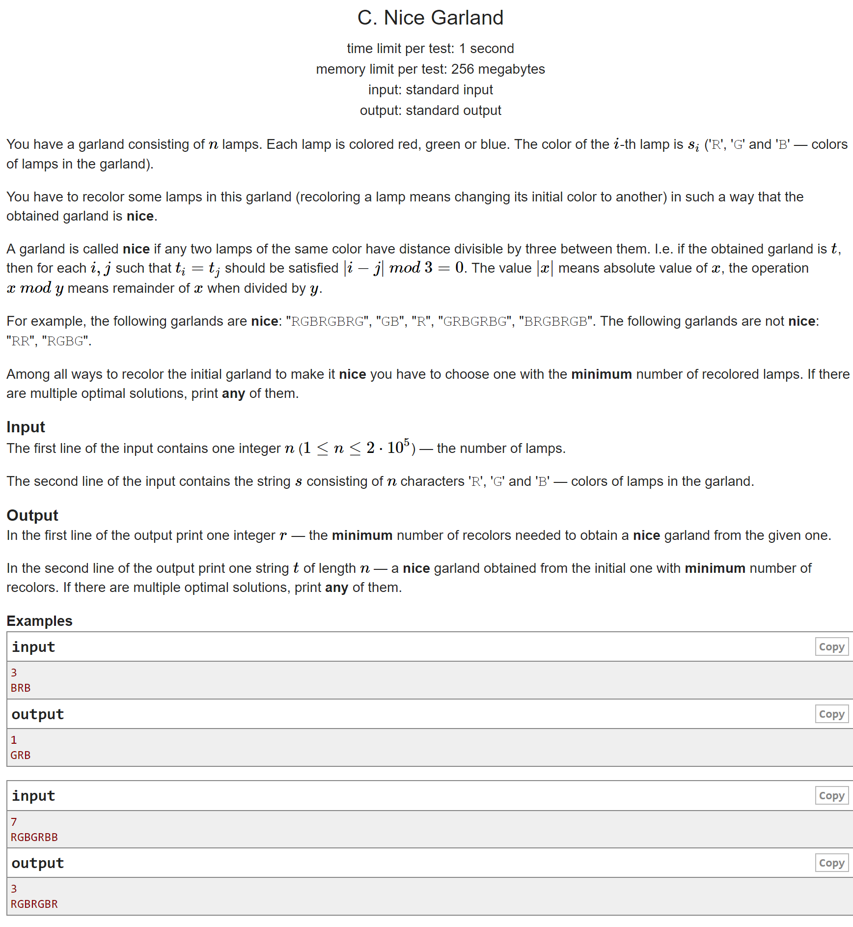 以上就是称心微笑最近收集整理的关于codeforces-1108C. Nice Garland-题解的全部内容,更多相关codeforces-1108C.内容请搜索靠谱客的其他文章。