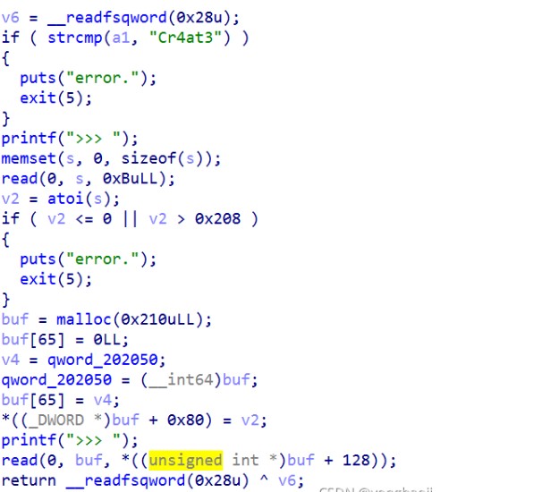 As above, it set the size to 0x208 over the length of buf. So it follows that we can result in heap overflow.