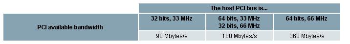 PCI的有效带宽取决于所用电脑的PCI总线,下表显示的是实际带宽,所有连接到总线上的设备的同步数据流量之和小于有效带宽。