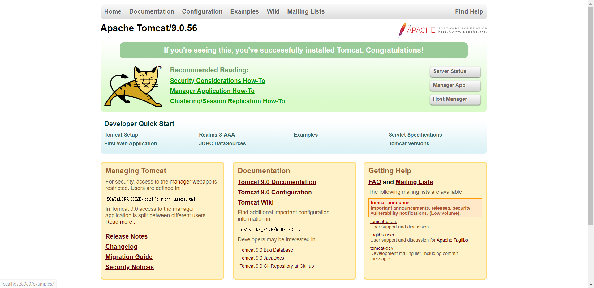 Step5:打开bin目录下的startup.bat后,在网址中输入localhost:8080,打开此页面后边设置成功。