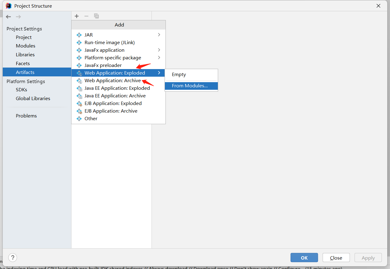 也可以不点击Create Artifact,通过下面操作完成创建部署包。
