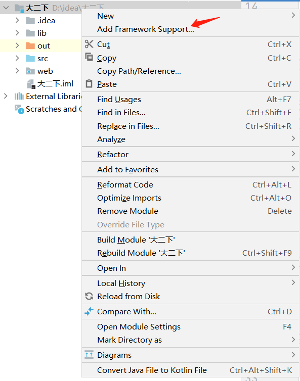 Step1:右击该项目添加框架支持