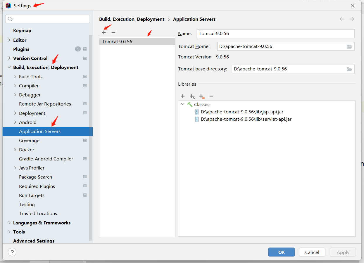 Step1:setting->Build,Execution,Deployment->Application Servers->点击加号,添加Tomcat Server