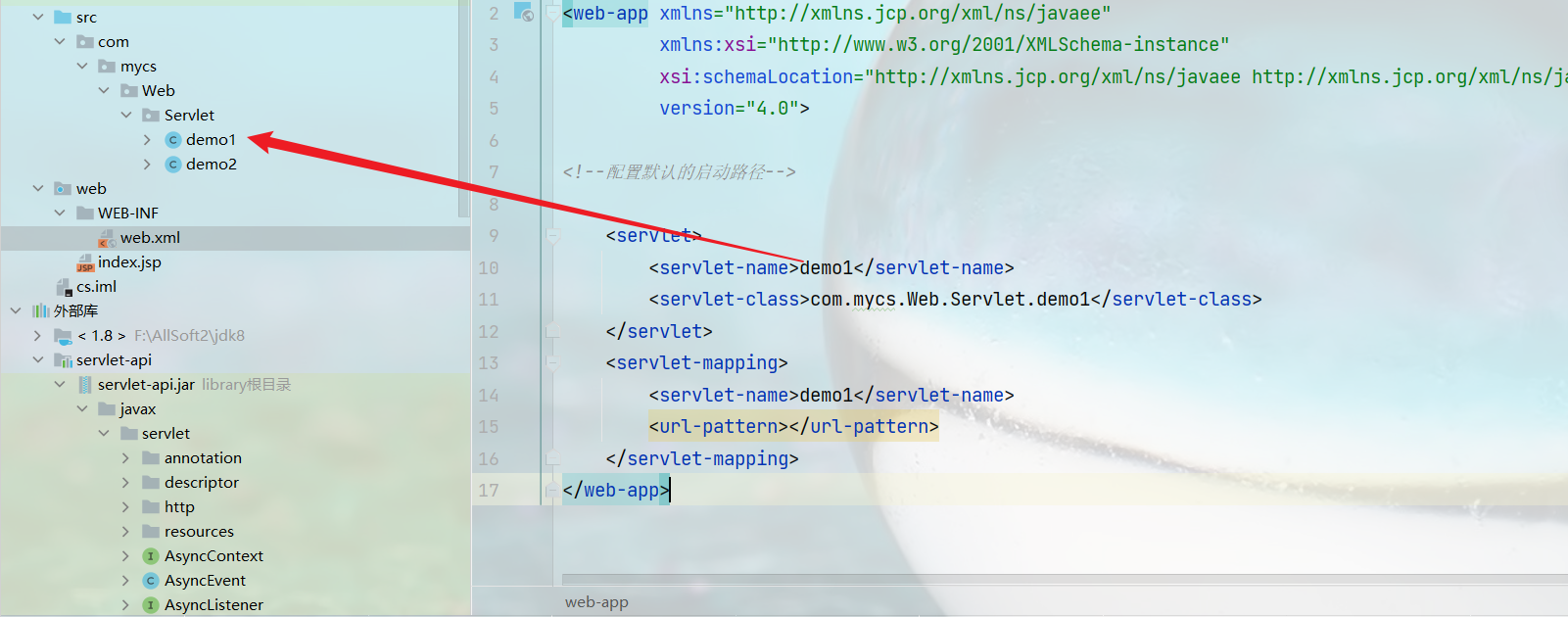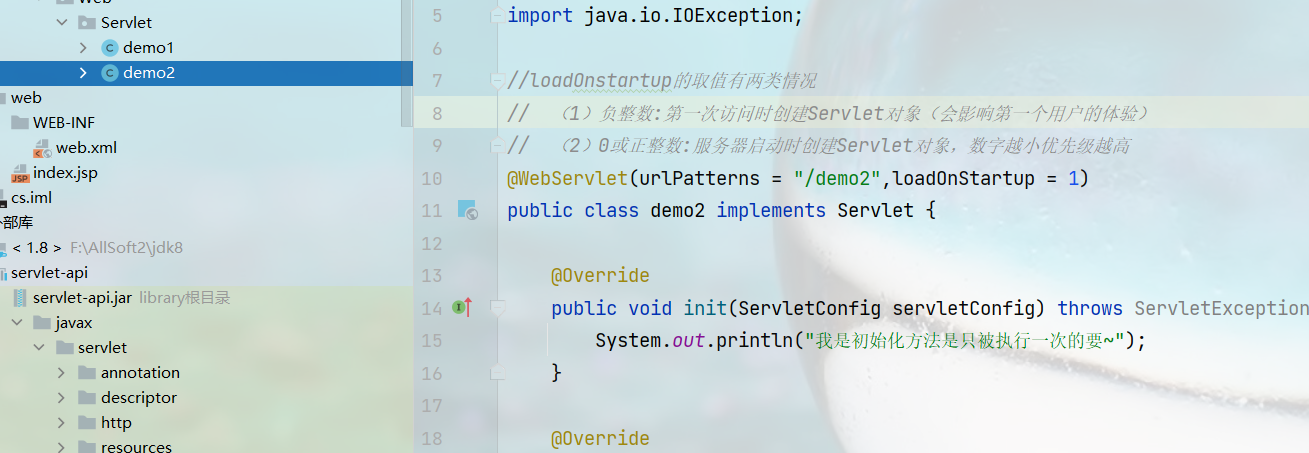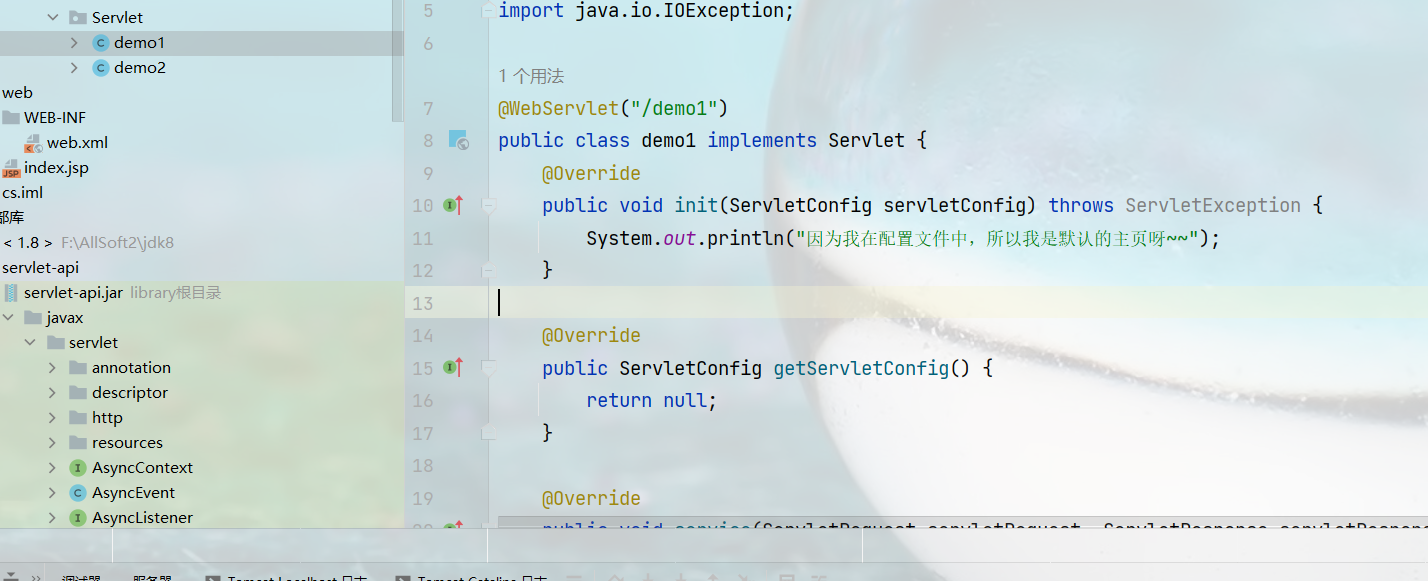 如果在demo1中配置可能会报错,一般在web.xml中配置的话不能再去servlet中去写注解的