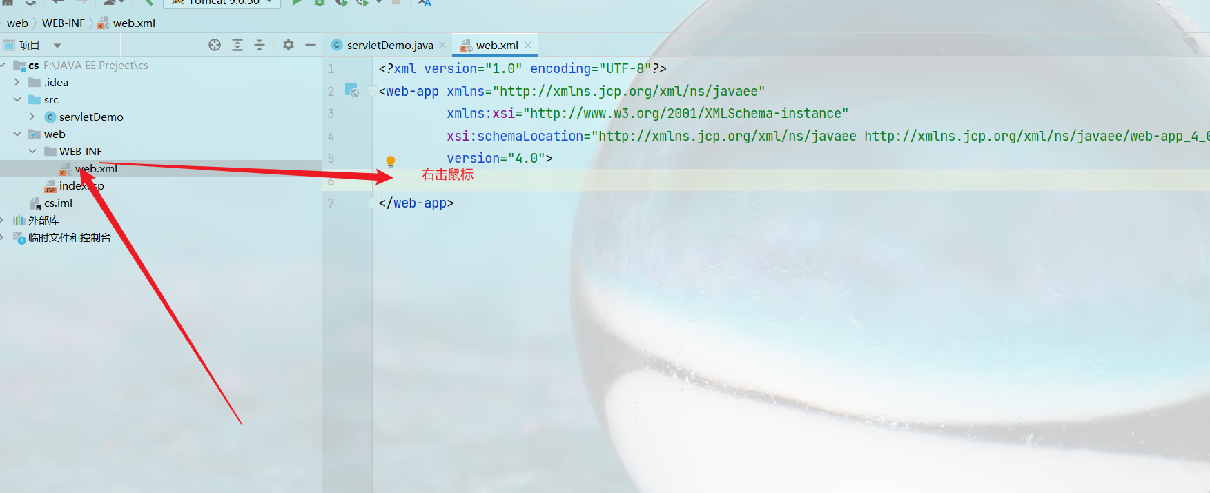 22 我们回到目录中的WEB-INF文件夹中的web.xml文件,右击鼠标选择生成(快捷键Alt+Insert)