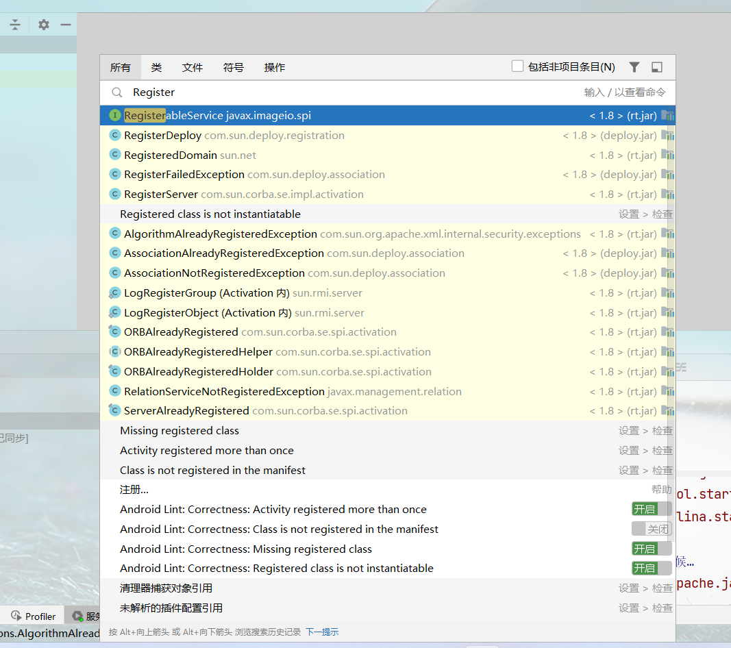 12 我们回到项目 双击Shift(就是随便搜搜的快捷键)然后我们输入 Register(注册表的意思)