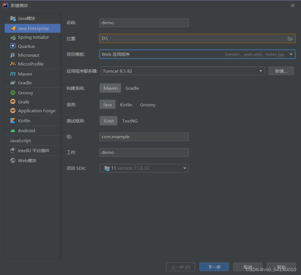 注意:下拉项目模块,选择“Web应用程序”