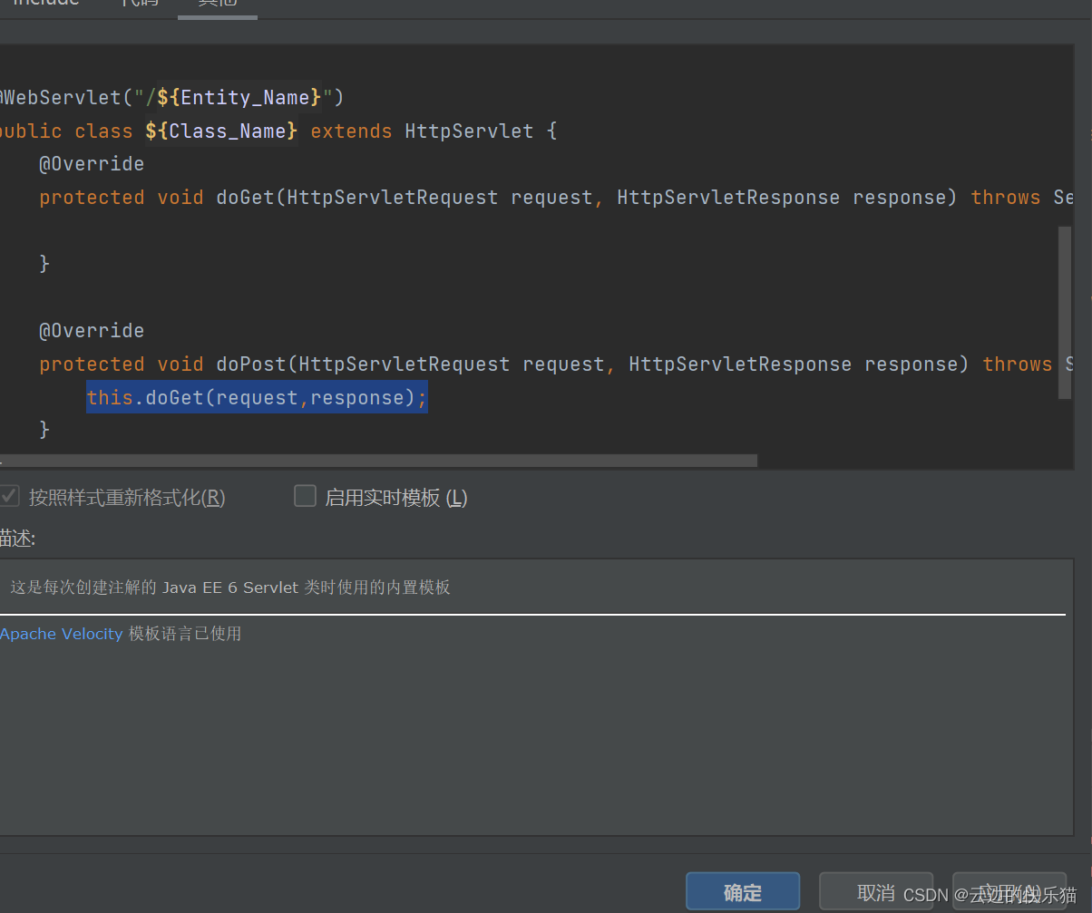 完成后点击确定就好了,然后每次创建servlet都是生成这个模板了