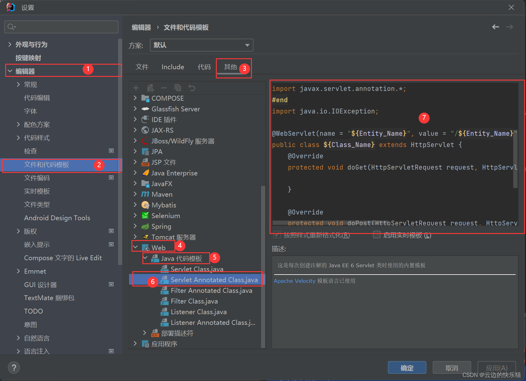 把这个模板自定义,就可以提前定义要生成的servlet,就不用我们再去删除多余的东西了,可谓是一劳永逸啊。