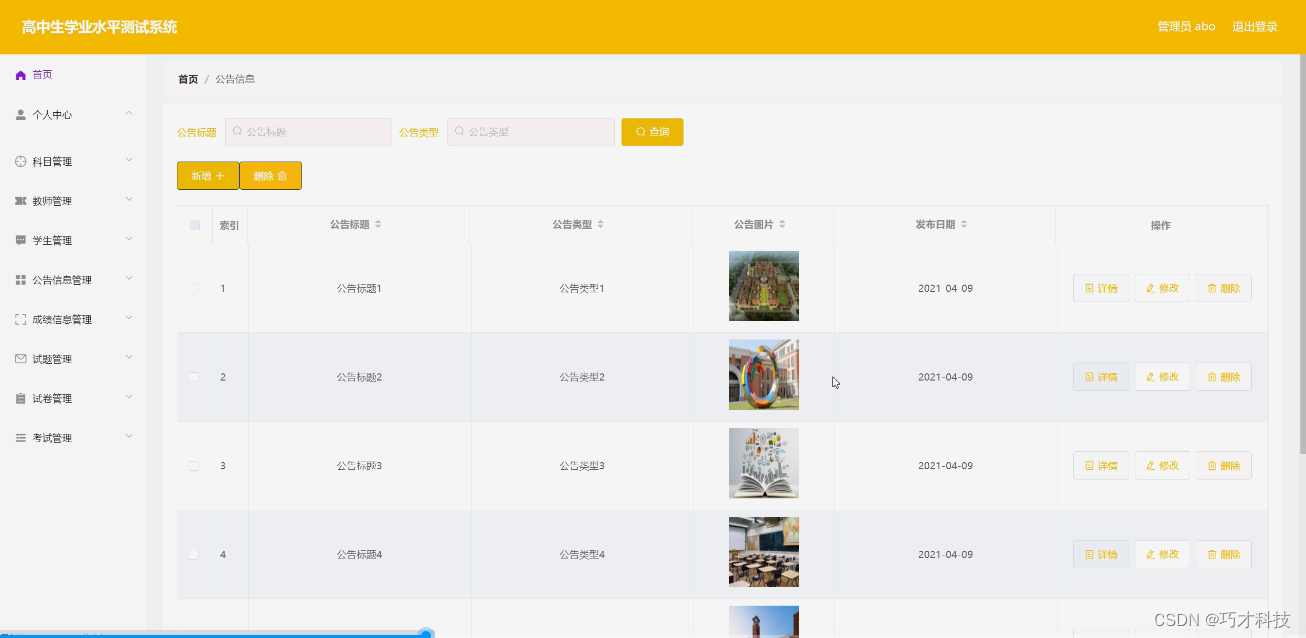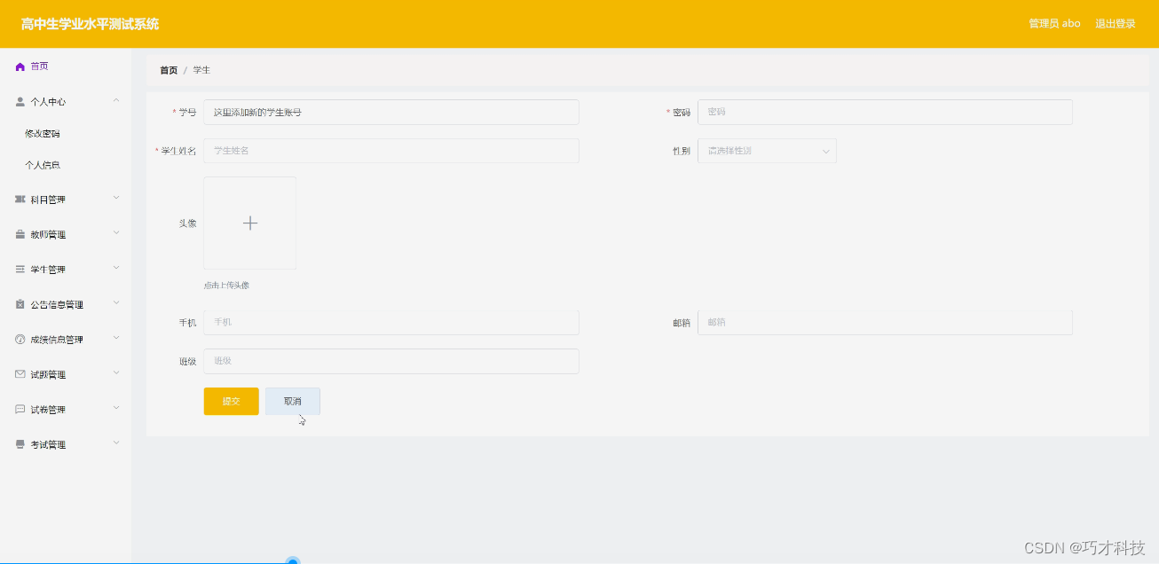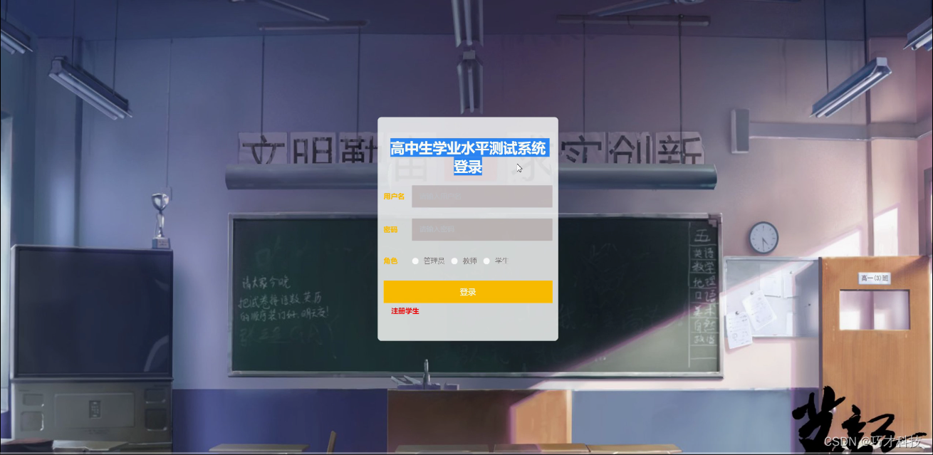 以上就是内向发箍最近收集整理的关于java毕设项目高中生学业水平测试系统(附源码)的全部内容,更多相关java毕设项目高中生学业水平测试系统(附源码)内容请搜索靠谱客的其他文章。