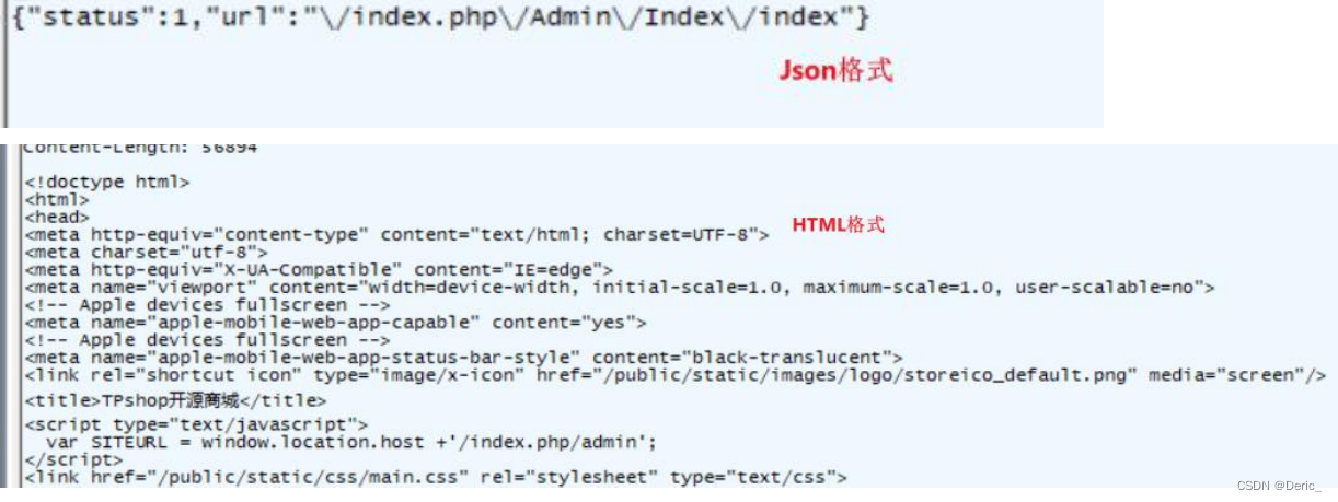 响应体是服务器返回给客户端的数据内容,常见内容:一般是HTML/JSON/TXT/图片等。下图示例能看出返回的常见两种类型是json和html格式: