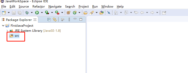 2.创建项目后,我们在Eclipse的左边会出现刚刚创建的项目,里面有一个Src文件包是专门用于放源代码的,后面我们创建的java文件都要在src里面。