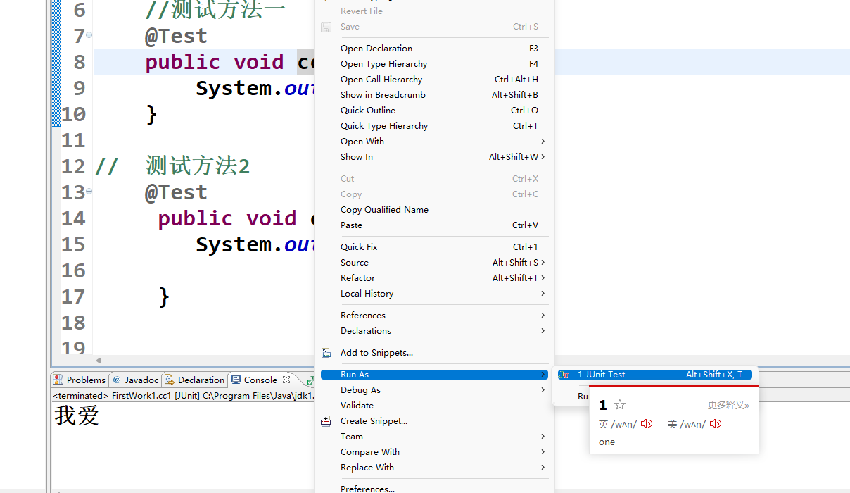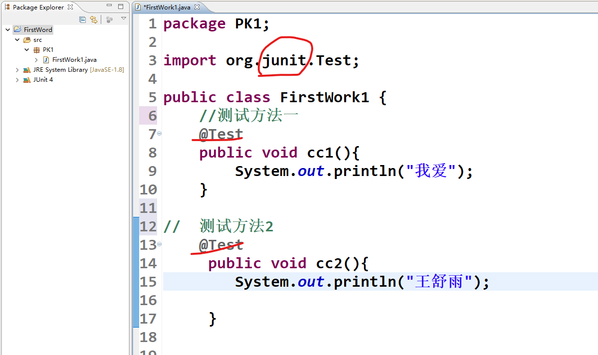 以上就是失眠哑铃最近收集整理的关于Eclipse简单的使用单元测试Junit进行练习题Junit 2.使用Junit进行练习 注意 每个测试方法上面要加上@Test 如cc1 cc2 并且那个@Test是来自Junit的 的全部内容,更多相关Eclipse简单的使用单元测试Junit进行练习题Junit 2.使用Junit进行练习 内容请搜索靠谱客的其他文章。