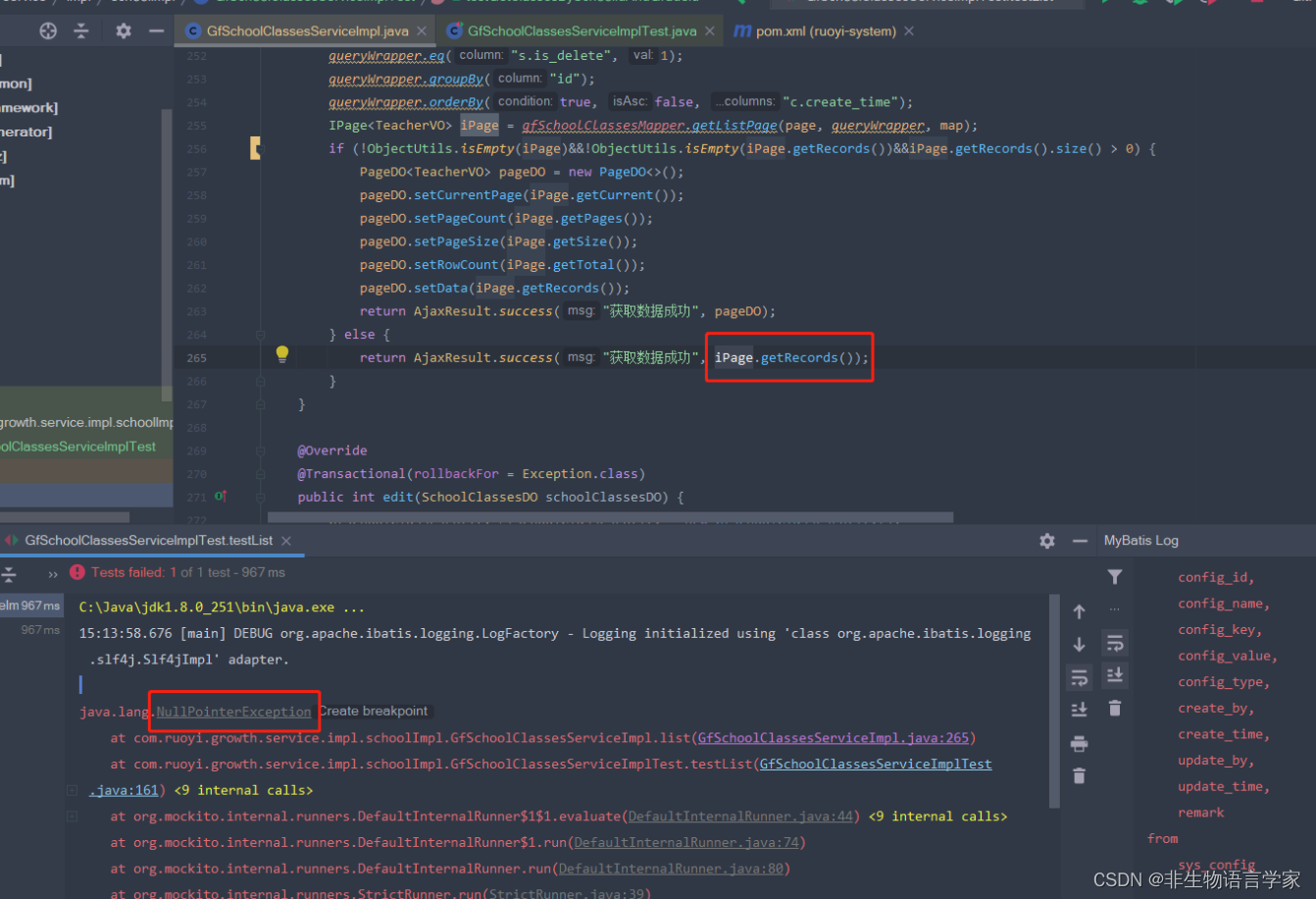 3.1、以空指针为例:我们写完代码或许忘记判断这时候的单元测试是通不过的