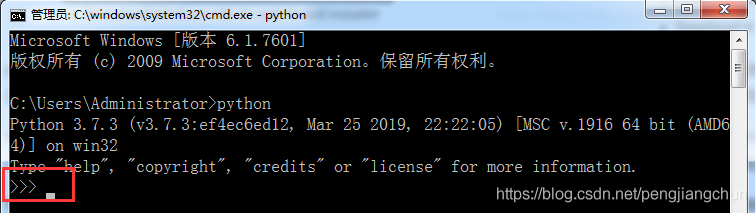 安装之后,运行CMD窗口,输入python指令,用于校验python是否安装成功。如下图表示成功!