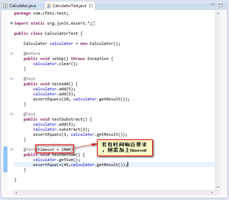 你只需要将这些测试用例稍作修改即可使用。完整的CalculatorTest代码如下: