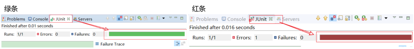 说明:如果执行结果无任何异常,则显示是一个绿色进度条,反之,如果执行结果出现异常,即为红色进度条
