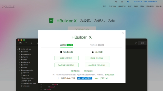 下载 https://www.dcloud.io/hbuilderx.html