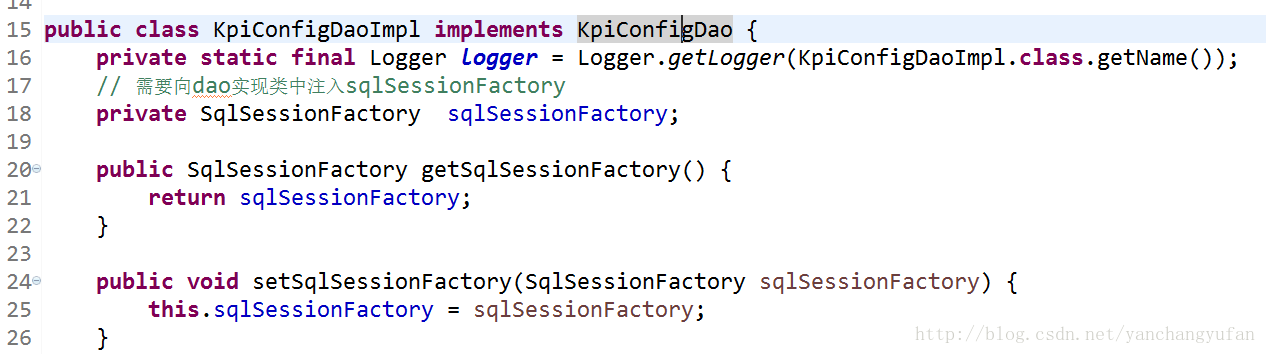 SqlSessionFactory sqlSessionFactory = (SqlSessionFactory)appCtx.getBean("sqlSessionFactory"); 这个地方是获取到Spring中注入的bean,然后将mybatis操作数据库的sqlSessionFactory注入到dao层中,进行对数据的操作。