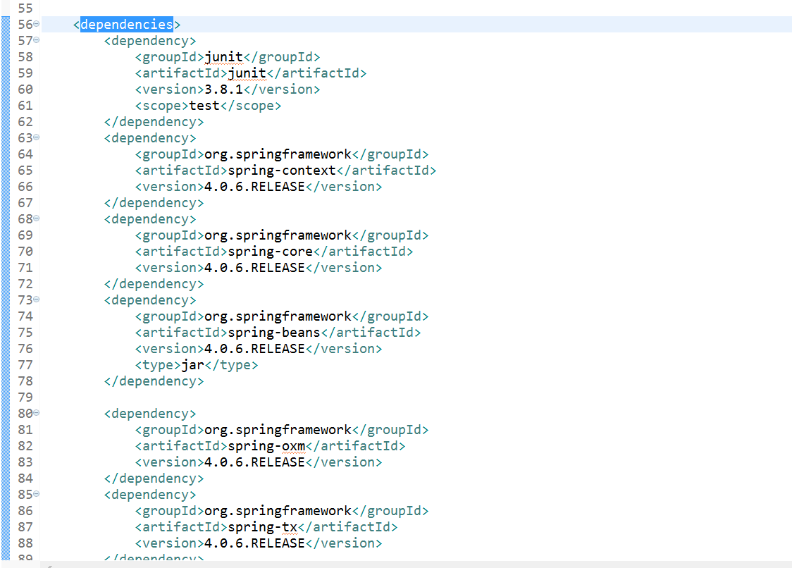 为了后期测试基于spring+Mybatis的单元测试,我们直接创建一个Mavan工程。然后pom.xml中配置好需要的JAR包。如下