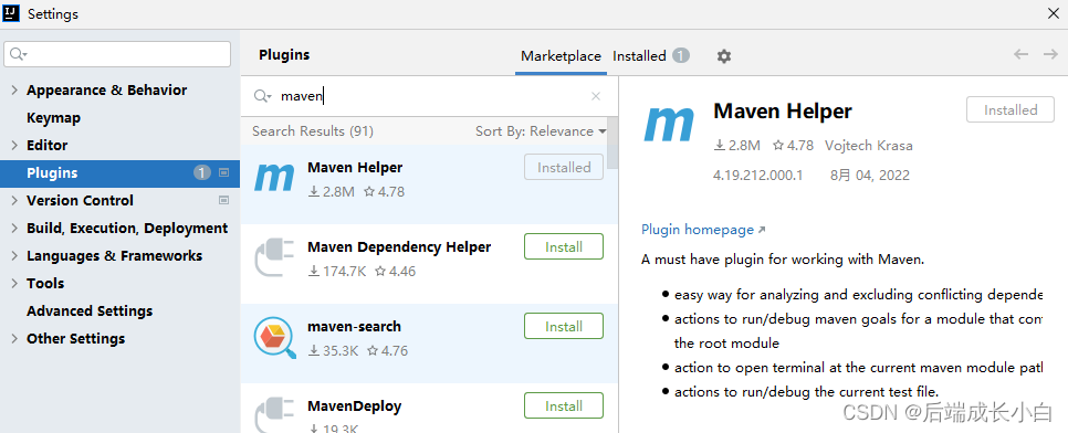 maven插件maven-helper可方便执行maven相关命令: