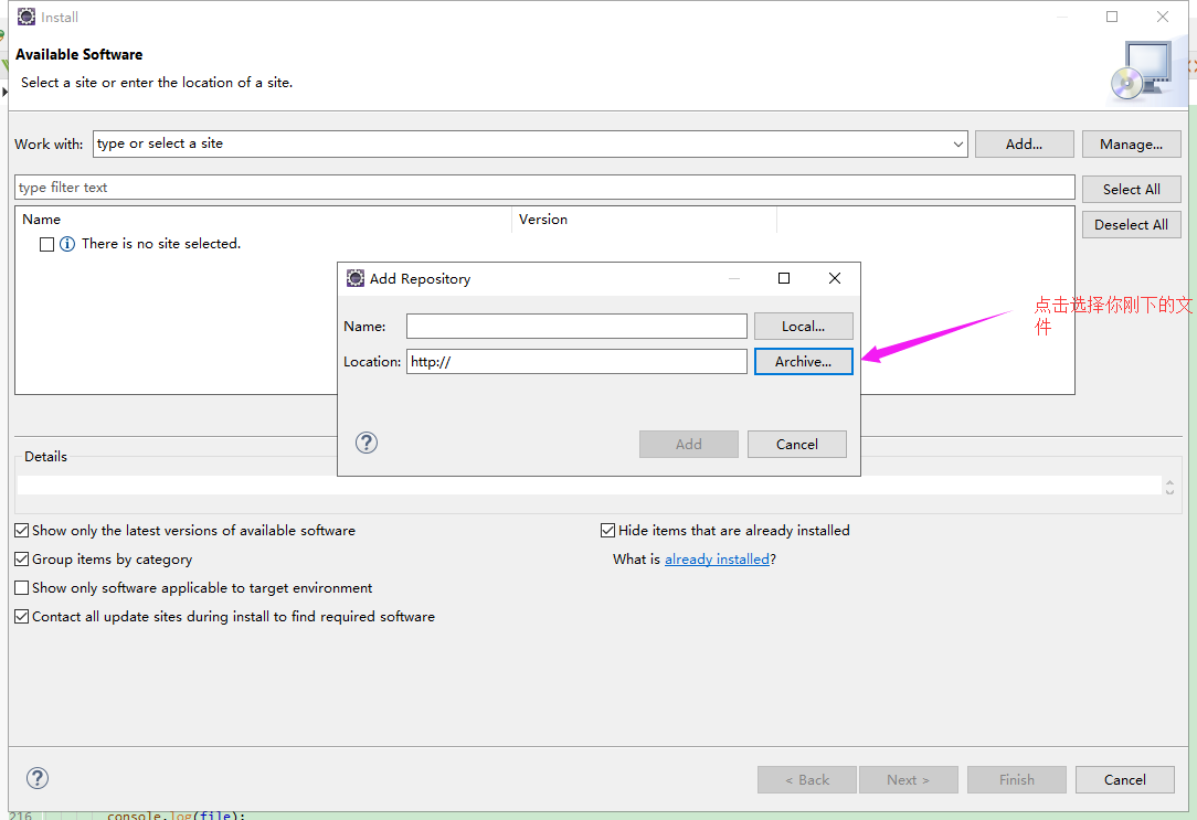 下载好以后,打开eclipse工具栏help-->install new solftware