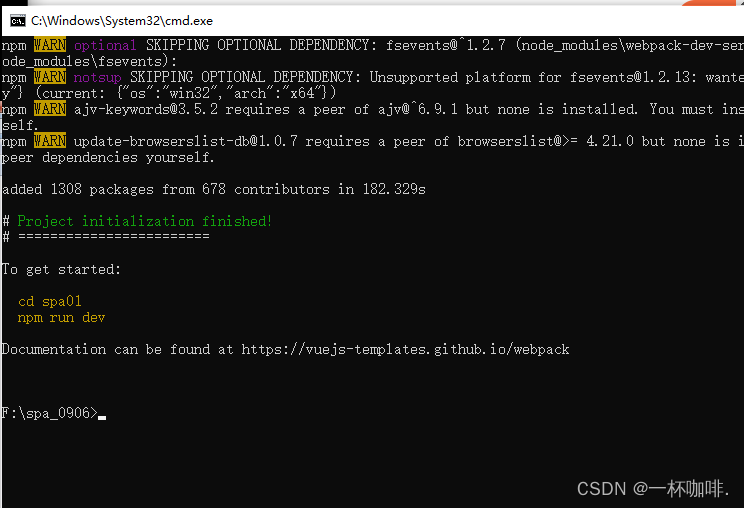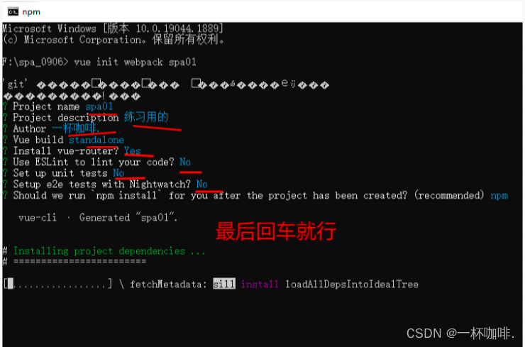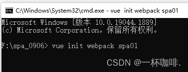 在命令窗口中输入:vue init webpack spa1 【注意:spa1指的是项目名,可自定义】然后回车。