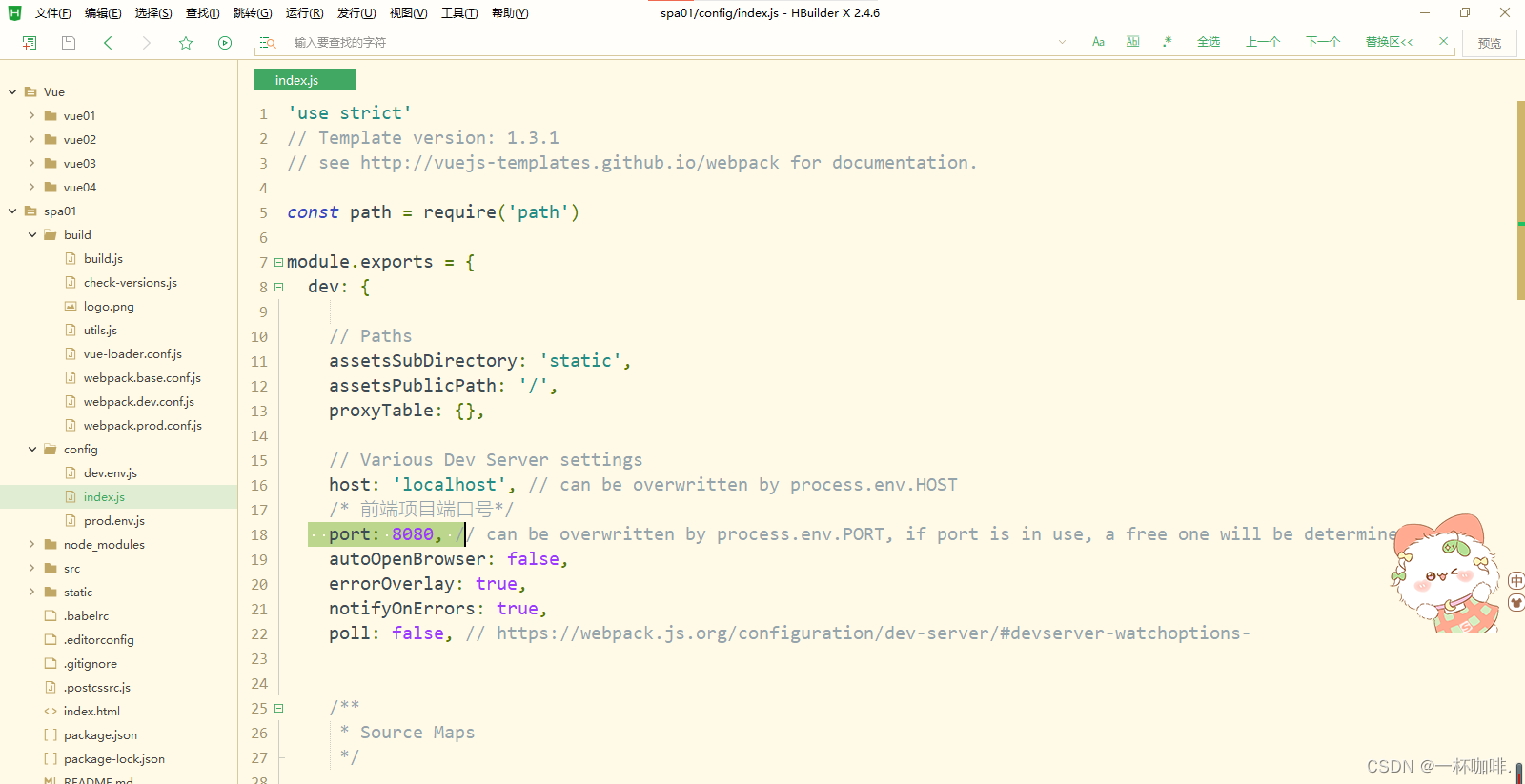 注意:vue-cli构建的项目,在控制台npm run dev启动后,默认的调试地址是8080端口的但是大部分时候,我们都要并行几个项目开发,很有可能已经占用了8080端口,所以就涉及到如何去更改调试地址的端口号了。