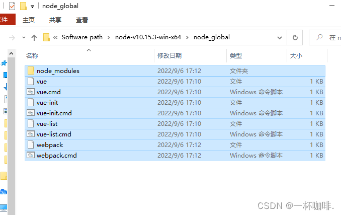 ①安装成功之后nodejs文件中的node_global里会出现如下文件: