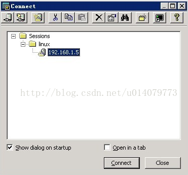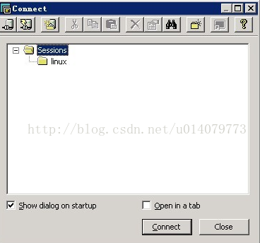 1、点击File→Connect,出现Connect窗口,创建Sessions,创建一个目录,名字叫linux。如图: