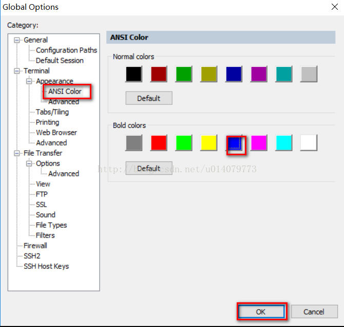 终端全局颜色设置:Options ——》 Global Options ——》 Terminal ——》 Appearance ——》 ANSI Color