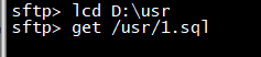 2、下载时在SFTP下先 lcd 选择你要下载到本地哪一个目录