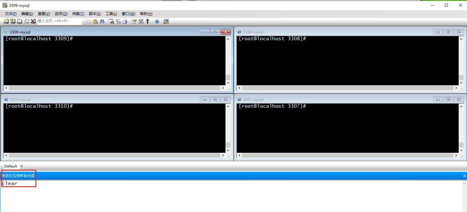 (4)右击命令行窗口,选择发送命令至所有窗口
