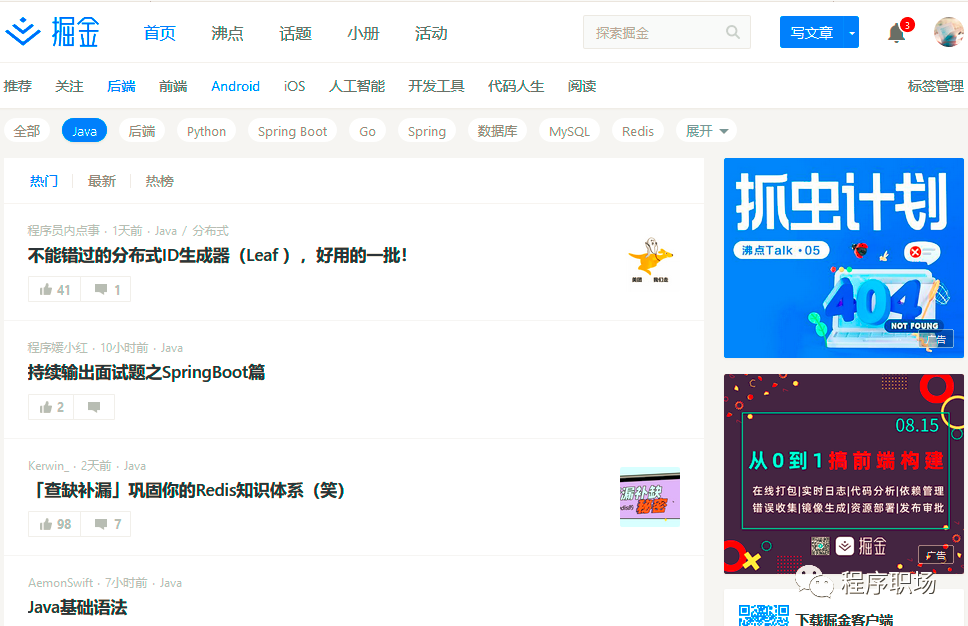 掘金并不是很早的技术网站,但是却发展很快,现在很多技术大牛都在这里更新技术文章,很多术干活都能在这里查看到。