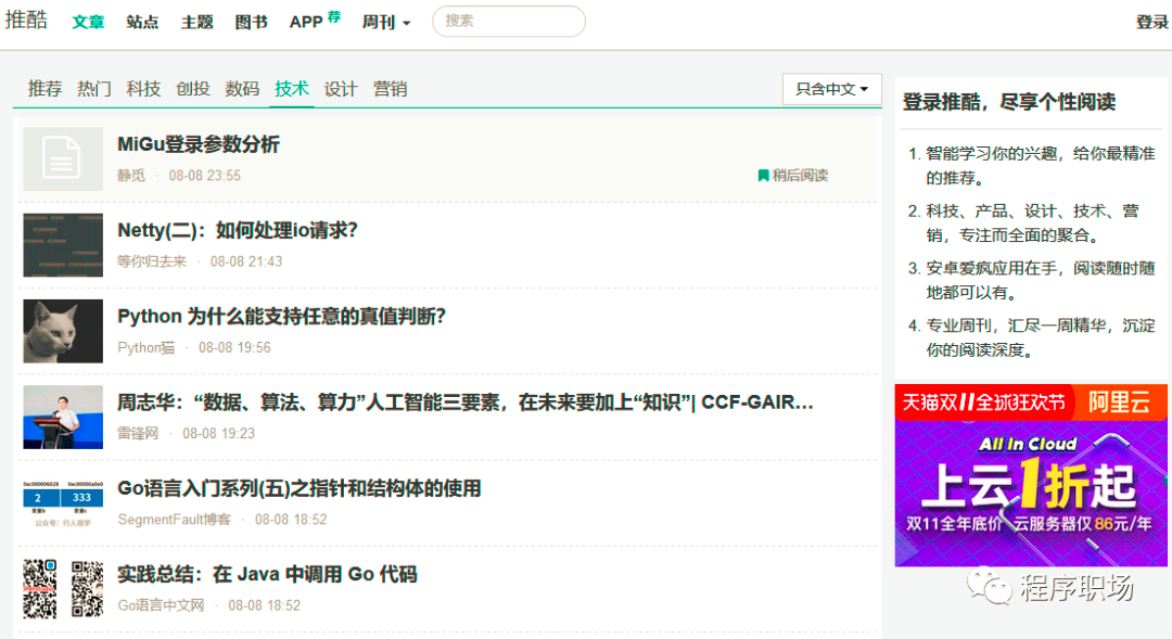 推酷专注于IT领域的信息挖掘和聚合推荐,期望通过技术解决信息获取方面的诸多问题。推酷可能是国内做的最全的科技文章聚合产品,提供的内容涵盖科技、技术、设计、营销等方面。