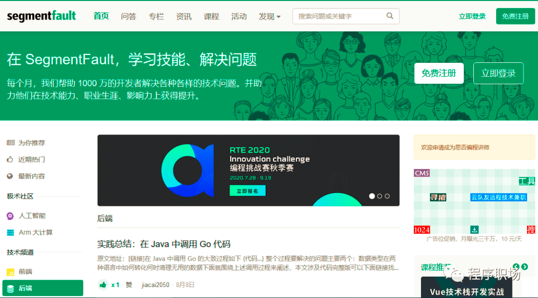 https://segmentfault.com/channel/backend